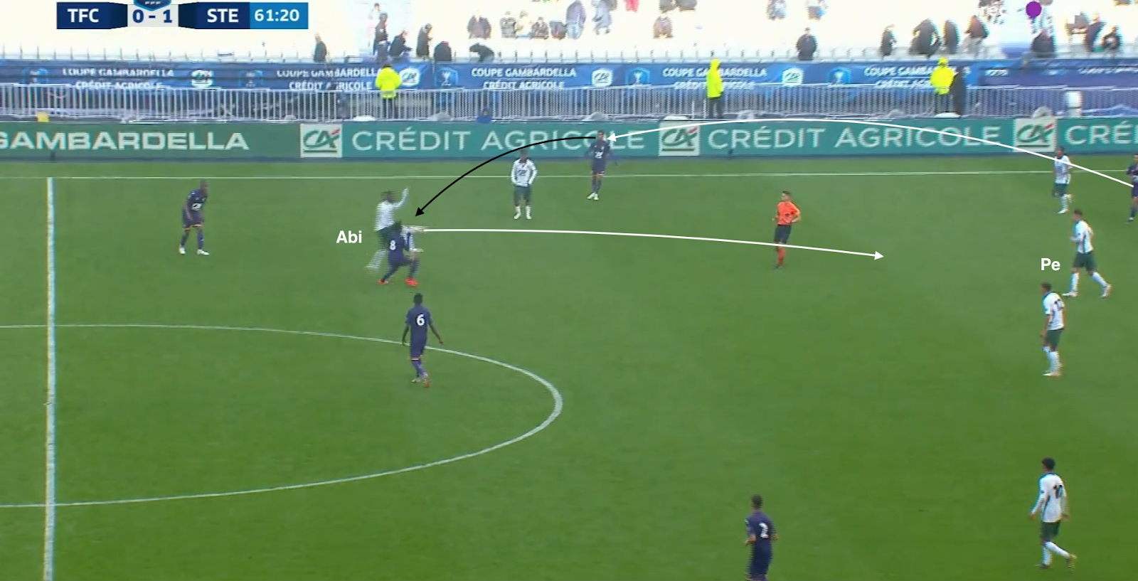 Il décide de jouer long sur Charle Abi, qui remet en arrière à Abdoulaye Sidibé. Malheureusement, la combinaison avec Tyrone Tormin (qui avait permuté avec Bilal Benkhedim) échoue.
