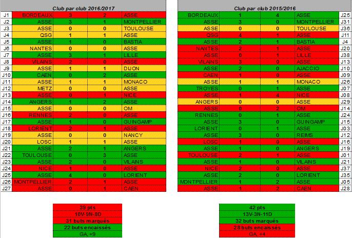 L'ASSE a concédé cet après-midi sa 4e défaite consécutive, Galette égalant ainsi sa pire série d'entraîneur des Verts. Lors de l'hiver 2011, ses protégés avaient enchaîné des revers contre les vilains (1-4) chez les Phocéens (1-2), contre les Aiglons (0-2) et chez les Caennais (0-1) avant de redresser la tête à domicile contre Brest (2-0, buts de Sako et Payet).