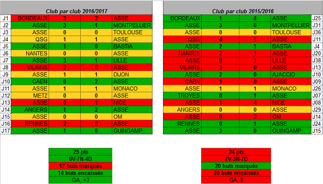 Les Verts sont toujours dans les clous pour terminer la demi-saison en avance par rapport à la saison passée grâce à la victoire obtenue hier contre Guingamp. Toujours un point en avance, il va néanmoins falloir profiter d'une opposition abordable (Lorient et Nancy) pour faire un carton plein afin de faire mieux que les 30 points de la saison dernière.