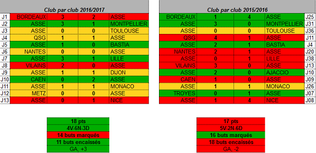 Les résultats qui s'enchaînent ont beau être peu positifs, les Verts gardent toujours un point d'avance sur la saison passé dans le Club par Club. C'est en défense qu'une véritable solidité a été retrouvée, alors que nous sommes en léger déficit sur le plan offensif, sans que cela ne surpenne grand monde, de toute évidence.